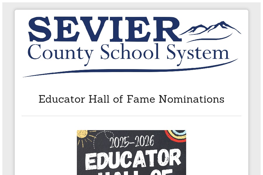 Educator Hall of Fame Nominations To Nominate, please visit SCSS's Hall of Fame webpage to view previous Inductees and to nominate a former Sevier Coun. . .